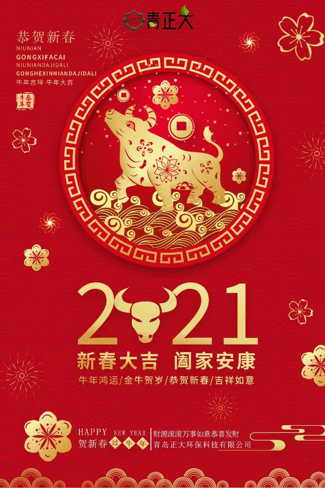 值新春佳節(jié)到了之際,青島正大環(huán)??萍加邢薰救w員工恭祝大家新年快樂,健康幸福!